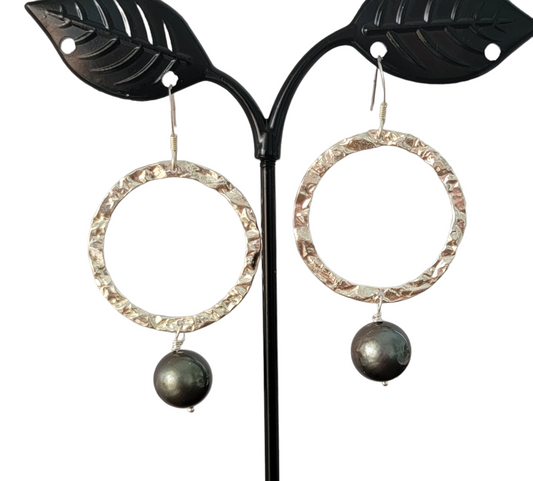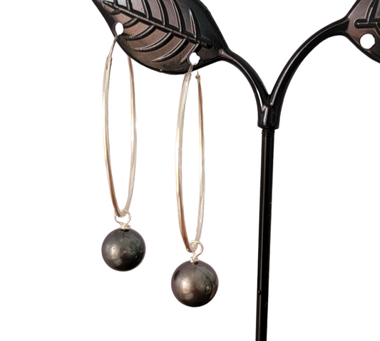 Tahitian Pearl Large Hoop Earrings Sterling Silver June Birthstone Black South Sea Pearl