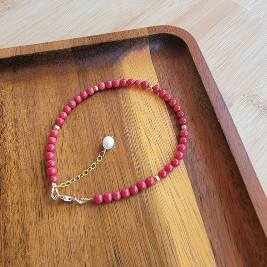 Red Coral Anklet Genuine Gemstone Crystal Beaded Dainty Anklet with Pearl Boho Jewelry Minimalist Tiny Handmade