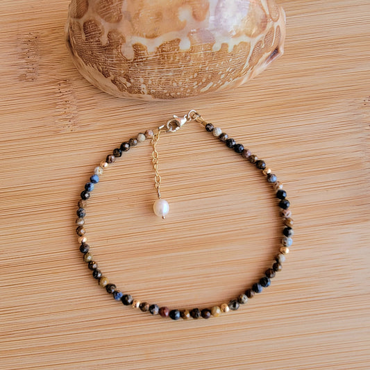 Namibia Pietersite Anklet Genuine Gemstone Crystal Beaded Dainty Anklet with Pearl Boho Jewelry Minimalist Tiny Handmade