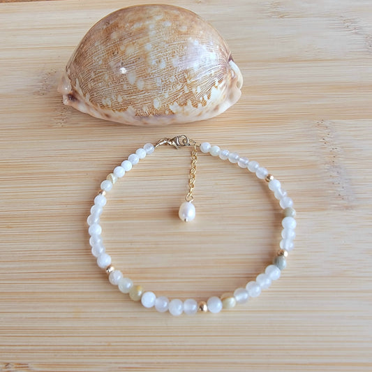 Moonstone Anklet Genuine Gemstone Crystal Beaded Dainty Anklet with Pearl Boho Jewelry June Birthstone Handmade