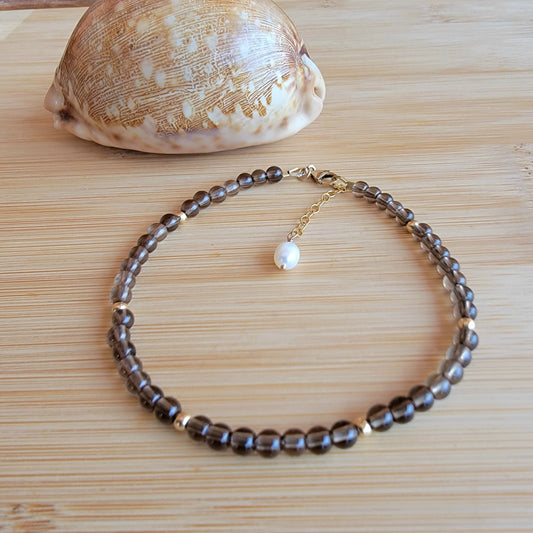 Smoky Quartz Anklet Genuine Gemstone Crystal Beaded Dainty Anklet with Pearl Boho Jewelry Minimalist Tiny Handmade