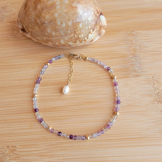 Flourite Anklet Genuine Gemstone Crystal Beaded Dainty Anklet with Pearl Boho Jewelry Minimalist Tiny Handmade