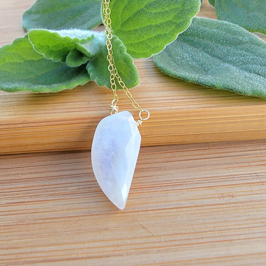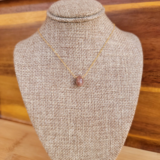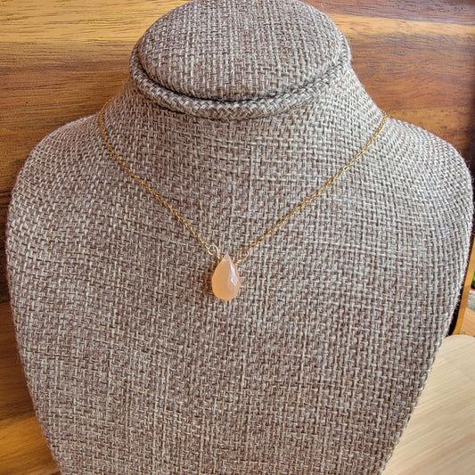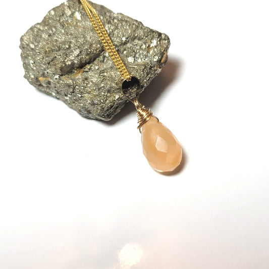 Peach Moonstone Necklace Gold Genuine Gemstone Briolette Handmade June Birthstone
