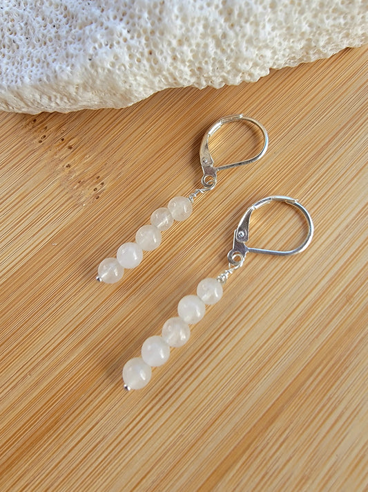 Minimalist Bar Earrings Rainbow Moonstone Crystal Gemstone Drop Dangle Boho Jewelry Handmade June Birthstone