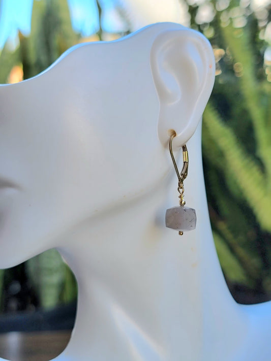 Gray Moonstone Earrings Dangle Drop Gold June Birthstone Handmade