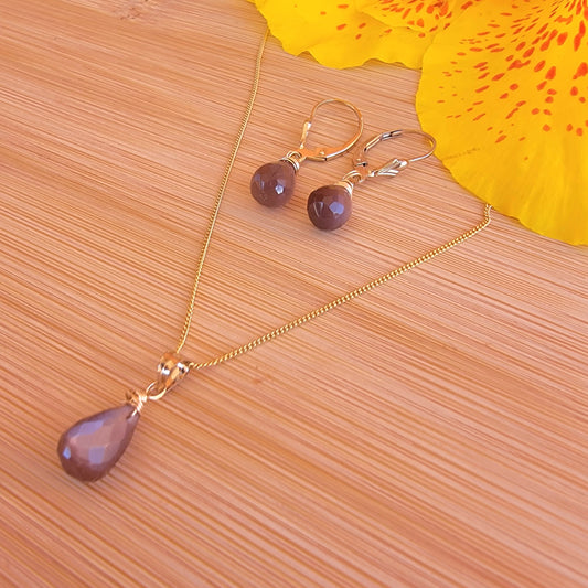 Jewelry Set Chocolate Moonstone Crystal Gemstone Earrings and Necklace gold June Birthstone