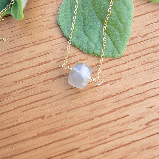 Gray Moonstone Floating Necklace Crystal Gemstone Gold Minimalist Jewelry Handmade June Birthstone
