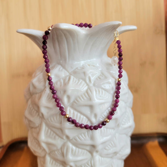 Ruby Anklet Genuine Gemstone Crystal Beaded Dainty Anklet with Pearl Boho Jewelry Minimalist Tiny July Birthstone