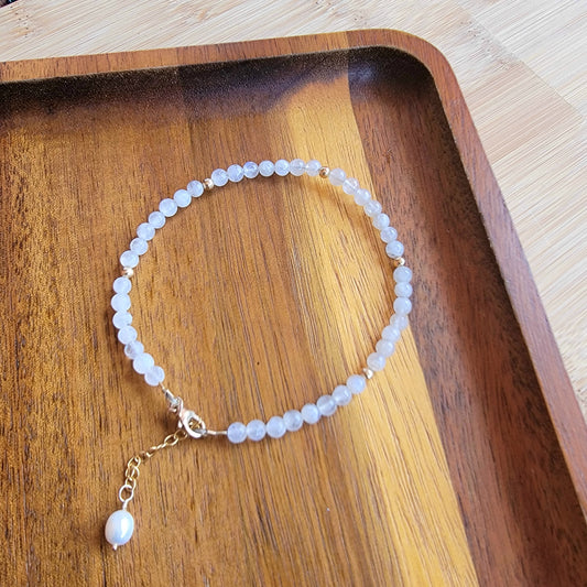 Moonstone Anklet Genuine Gemstone Crystal Beaded Dainty Anklet with Pearl Boho Jewelry June Birthstone Handmade