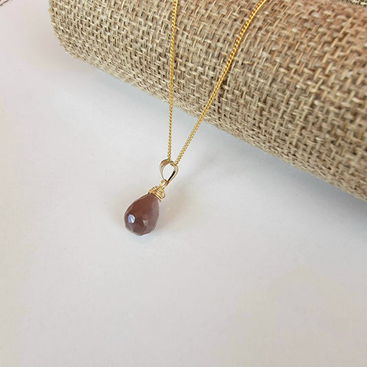 Chocolate Moonstone Necklace Gemstone Crystal June Birthstone Handmade Drop Briolette