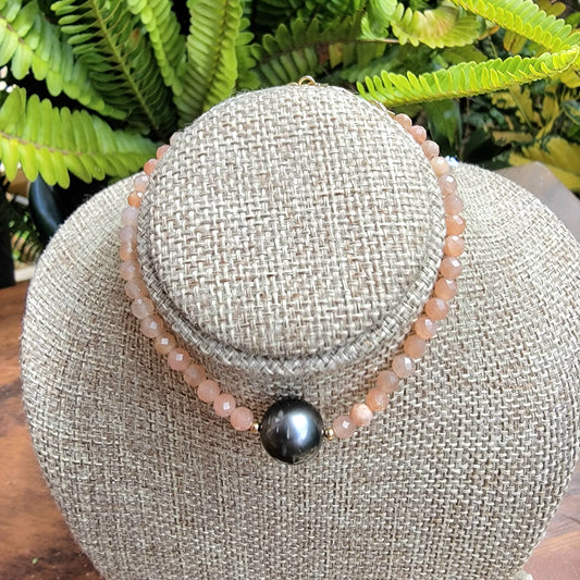 Tahitian Pearl Bracelet Sunstone Crystal Gemstone June Birthstone Handmade Unique Gift, Black South Sea Pearl