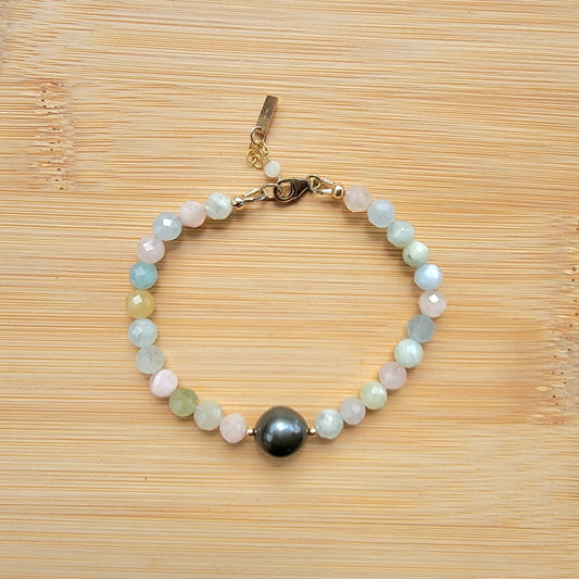 Tahitian Pearl Bracelet Morganite Crystal Gemstone Handmade June Birthstone Unique Gift, Black south Sea Pearl