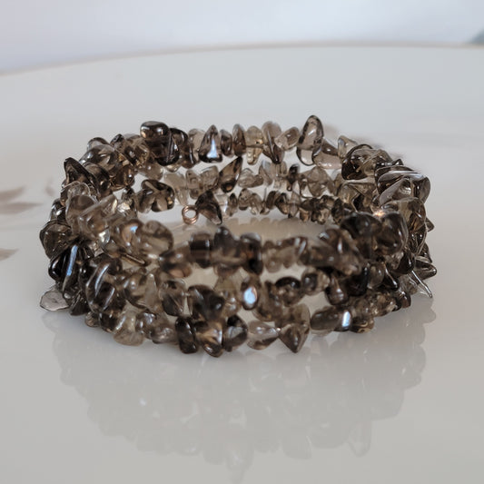 Natural Smoky Quarts Wrap Bracelet Gemstone Raw Chips set in Memory Wire