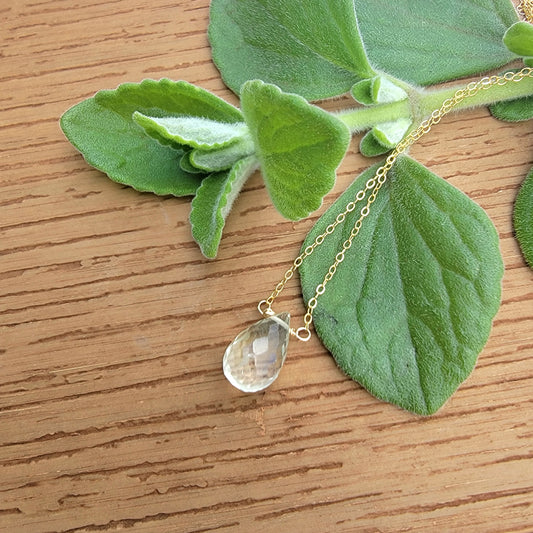 GREEN Amethyst Drop Necklace February Birthstone Gemstone 14K Gold Filled Handmade Briolette Prasiolite