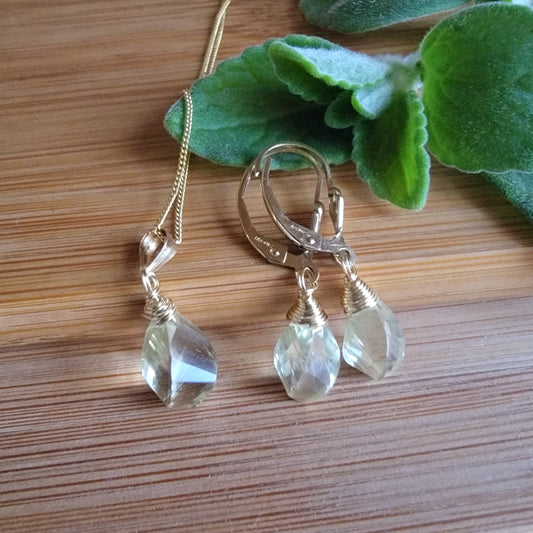 Jewelry Set Green Amethyst Prasiolite Crystal Gemstone Earrings and Necklace set February Birthstone