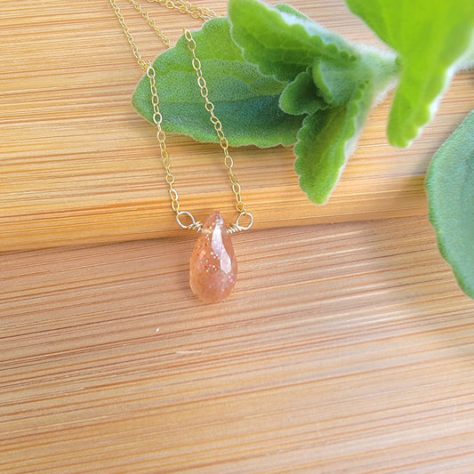 Sunstone Floating Necklace Crystal Gemstone 14K Gold Filled Minimalist Jewelry Handmade Simple