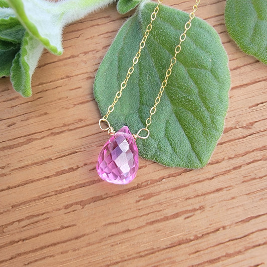 Pink Sapphire Floating Necklace Crystal Gemstone September Birthstone Minimalist Jewelry Handmade