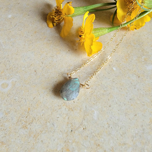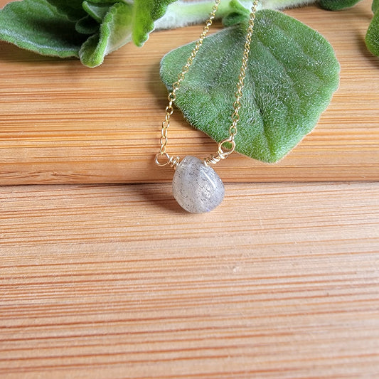 Labradorite Floating Necklace Crystal Gemstone 14K Gold Filled Minimalist Jewelry Handmade