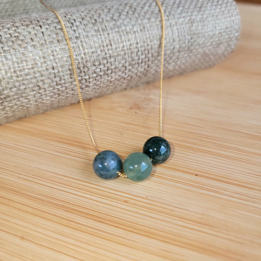 Green Moss Agate Floating Necklace 3 Stone Crystal Gemstone Minimalist Jewelry Handmade Simple