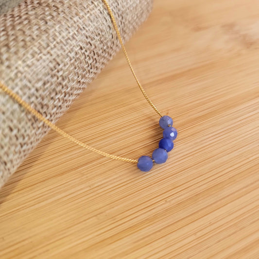 Lapis Lazuli Floating Necklace 3 Stone Crystal Gemstone Minimalist Jewelry Handmade Simple