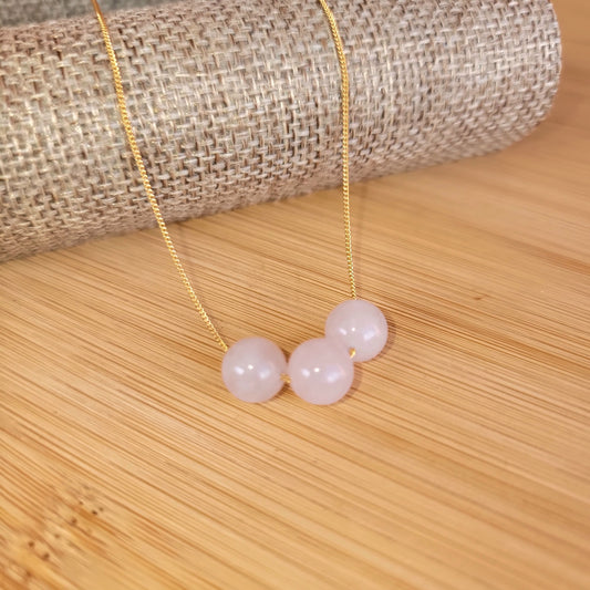 Rose Quartz Floating Necklace 3 Stone Crystal Gemstone Gold Minimalist Jewelry Handmade Simple