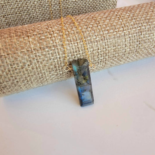 Labradorite Floating Necklace Bar Crystal Gemstone 14K Gold Filled Minimalist Jewelry Handmade