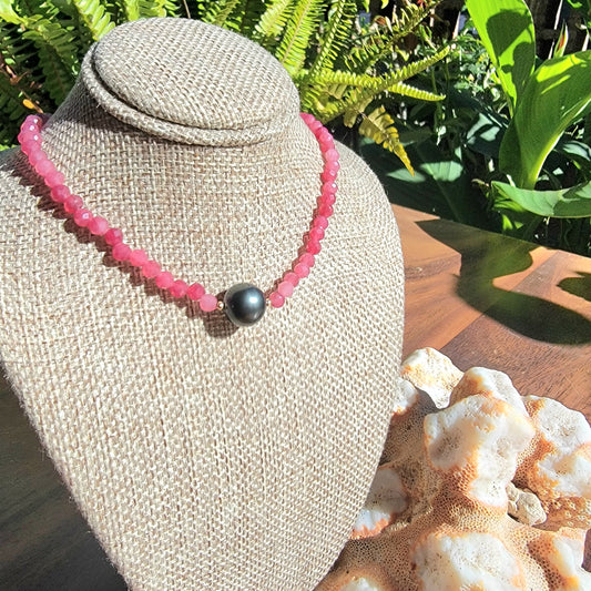 Tahitian Pearl Necklace Choker Garnet Semi Precious Stones June Birthstone HANDMADE Unique Gift January Birthstone