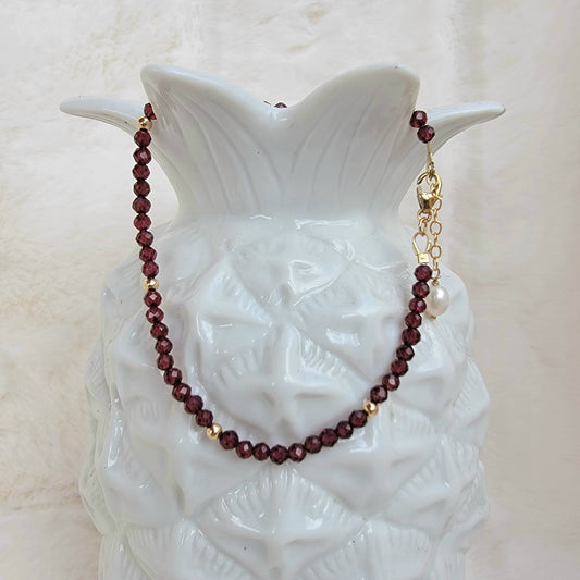 Garnet Anklet Genuine Gemstone Crystal Beaded Dainty Anklet with Pearl Boho Jewelry Minimalist Tiny January Birthstone