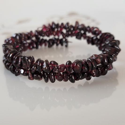 Garnet Wrap Bracelet Gemstone Raw Chips set in Memory Wire January Birthstone