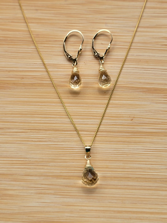 Jewelry Set Citrine Crystal Gemstone Earrings and Necklace set 14k gold filled genuine November Birthstone