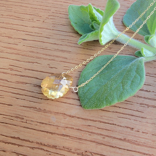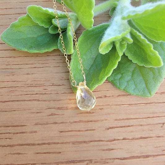 GENUINE Citrine Necklace November Birthstone Gemstone 14K Gold Briolette Handmade Best Gift for Her