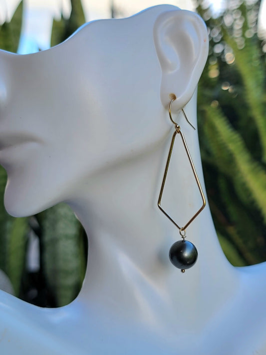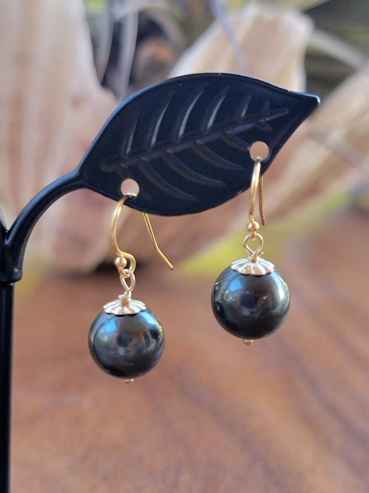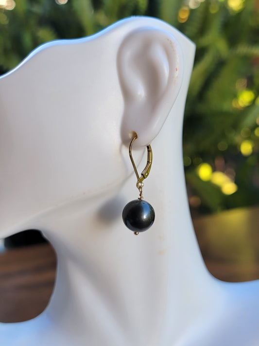 Tahitian Pearl Earrings Dangle Drop Black South Sea Pearl June Birthstone Gold
