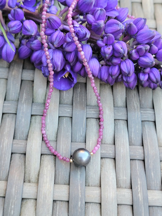 Tahitian Pearl Necklace Choker Ruby Semi Precious Stone Crystal Handmade June Birthstone Unique Gifts July Birthstone